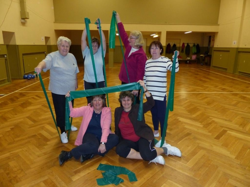 Im Stehen, Sitzen und Liegen kommen nicht nur Gymnastik- und Pezzibälle zum Einsatz, sondern auch Therabänder, Hanteln, Reifen, Steps und vieles mehr.